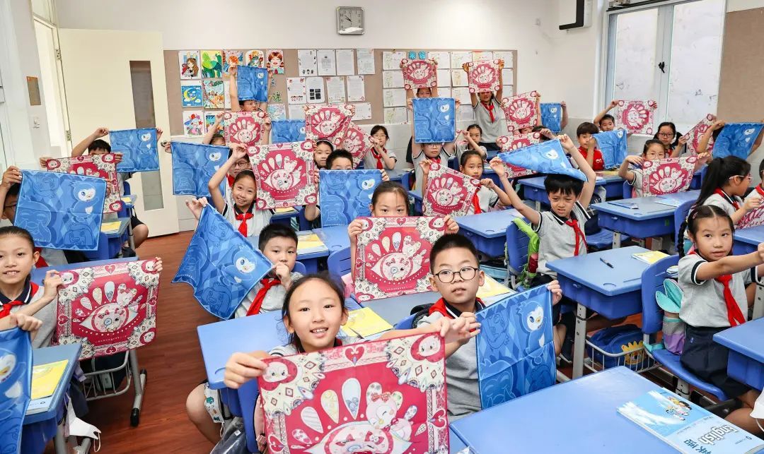9月1日是新学期开学第一天,在黄浦区蓬莱路第二小学,每个孩子都收到了来自学校别出心裁的开学礼物:一红一蓝两款手帕。它们全部来自学校美术老师的原创设计。把手帕交到孩子手里的时候,校长余祯说:“这是一块神奇的多功能手帕,期待你们创造性地、有想象力地玩转这块小手帕!”