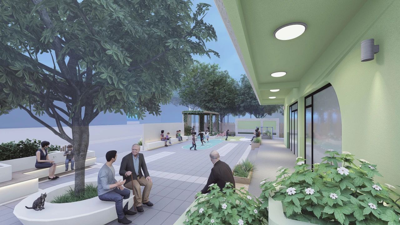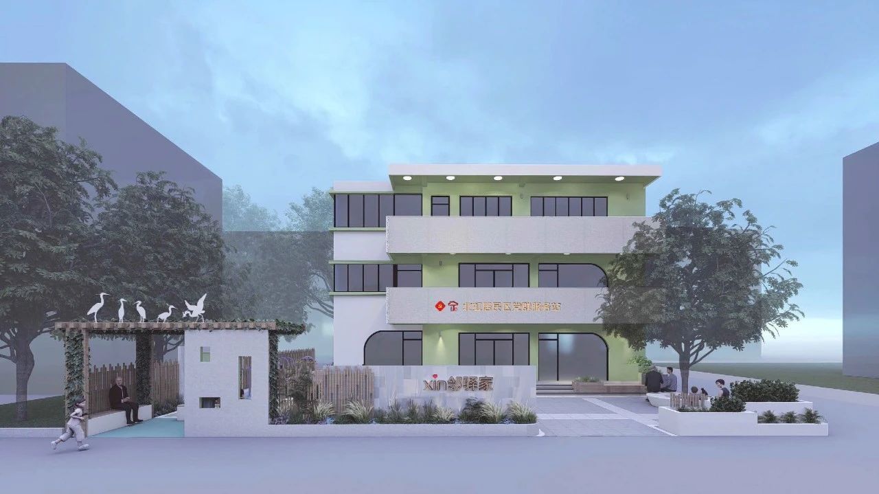 从日前公布的设计效果图中,室外设有健身运动区、广场活动区、互动休憩区和种植认养区,随着围墙的打开这些公共活动空间将一一融入社区居民日常生活,实现人与人的互动。三层的室内空间更加丰富多元,划分为美好共享家、元气服务站、乐享生活园、解忧杂货铺、北虹好时光五个区域,不仅设有居民助餐点、亲子乐园、居民议事厅、多功能活动室,还有众多以公共文化为主的居民活动空间,举办展览、读书会、主题讲座等众多活动,让各年龄层的老百姓都能在此找到归属感。下面来看看效果图~