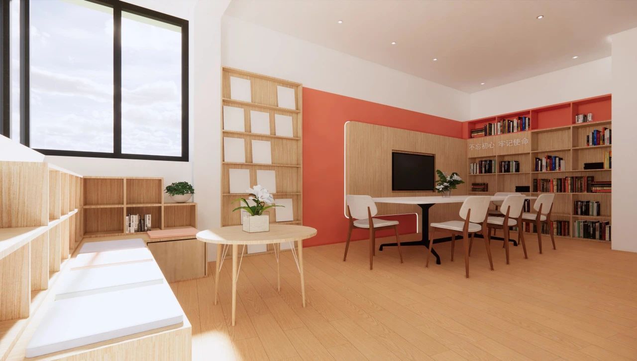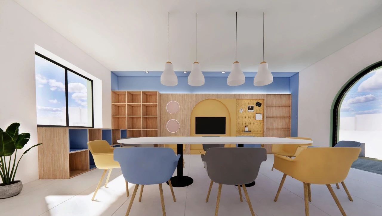 2F·缤纷议事厅|这个缤纷多彩的空间给社区居民议事提供了和谐宽敞的环境,居民可在此一起共聊社区事、共建社区新面貌。