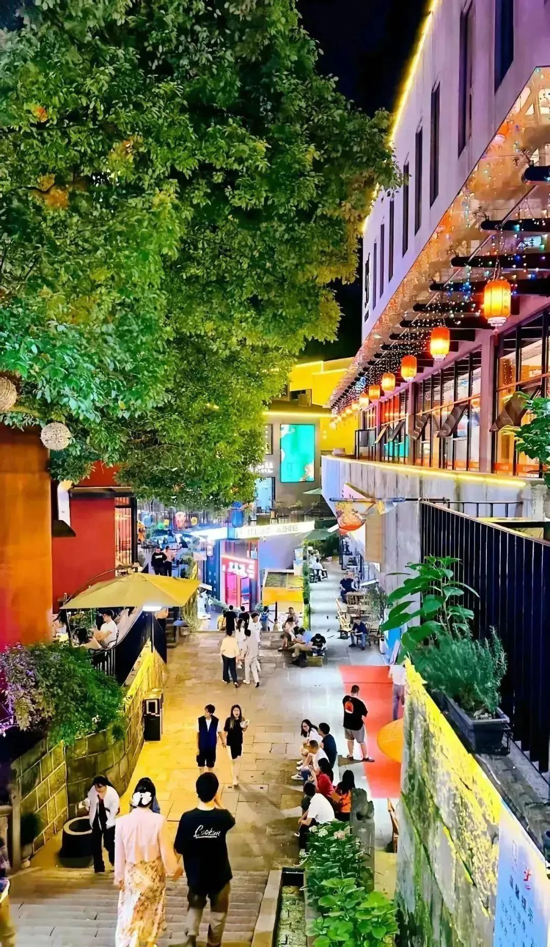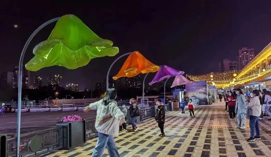 夜晚的水木秦淮南艺后街,绚烂迷人的灯光和自带的文艺气息给人带来不一样的感官体验,勾勒出外秦淮河的另一种美。标志性的“大蓝鲸”雕塑、五彩绚烂的灯光、极富设计感的空中花园、风格不同的餐厅酒吧、集文创休闲于一体的集市、乐队和歌手驻唱,彼此间和谐融洽地组成了这里。南艺后街的感应“牵牛花灯”装置同样激发你的少女心,站在花下,牵牛花灯为你开放,离开时,牵牛花又闭合,这是街区藏不住的浪漫小心思。