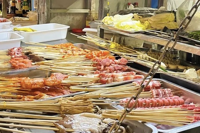 夜幕降临,港台街上的灯光和一路飘香的烟火气,总能让人充满幸福感。每到夜晚,人潮涌动,上百个摊位依次排开,热闹的夜生活从这里开始。这条市集曾牵动着的是很多蚌埠人的整个青春,以及无数蚌埠人的童年回忆。从街头到巷尾,只有你吃不下的绝对没有你找不到的~烤苕皮、烤面筋、烤生蚝、烤羊肉串、脆皮五花肉、锡纸花甲、藕粉、桂花藕、孜然羊肉、牛肉汤、牛肉面、酸辣粉、煎包以及蚌埠当地的美食在这里都能找到。