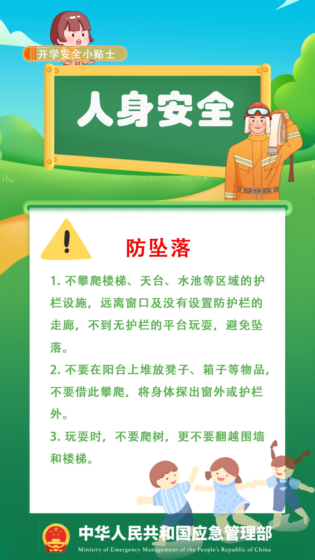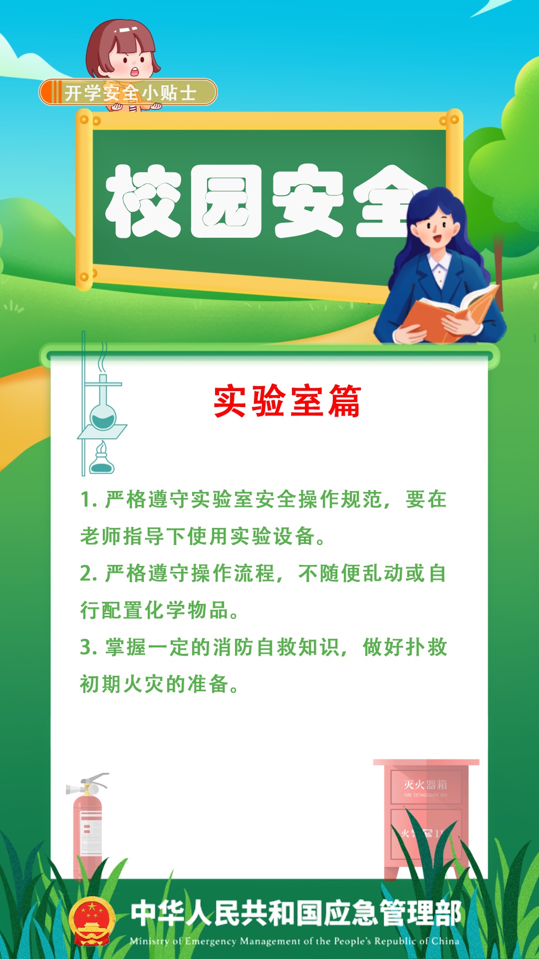 应急管理部提醒,回归校园生活,孩子们在教室、实验室和上学路上可能有哪些安全隐患?这些安全知识请每一位学生和家长认真学习。详见↓