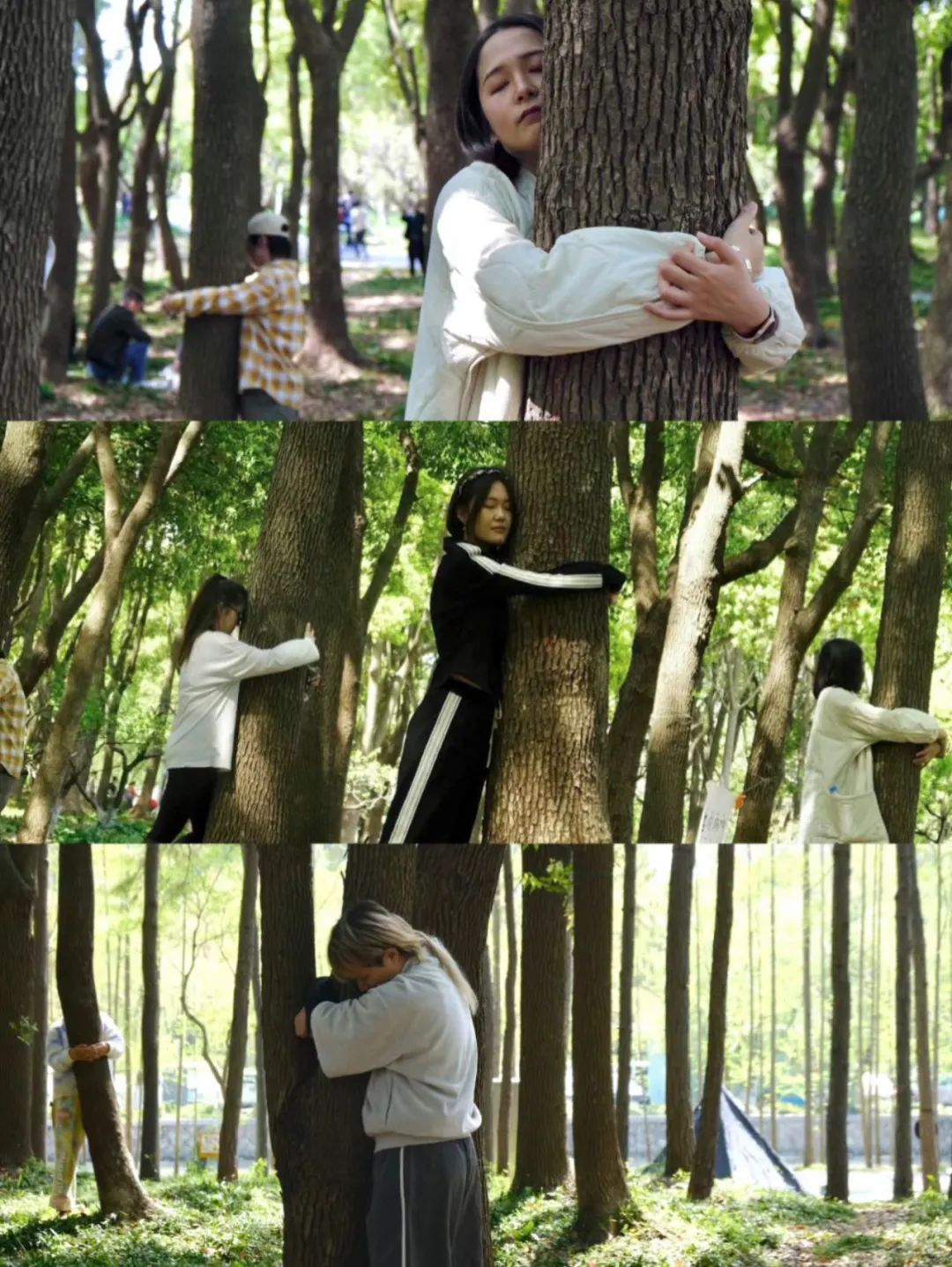 最近你去逛过公园吗?有没有注意到,很多白领打扮的年轻人正在与大树“肌肤相亲”?没错!当其他年轻人还沉迷于吸猫吸狗,有些年轻人已经去“吸树”了——他们称之为“抱树(hugging trees)疗法”!具体方式非常简单:走出家门,找一个公园,甚至就在路边,挑选一棵合自己眼缘的树,张开双臂,抱上去,静静感受。体会过“抱树”的人表示:“抱树”可以缓解焦虑、十分解压,能让人重新收获快乐、放松自己。人民公园、复兴公园、世纪公园,乃至市区的梧桐树街道,近来都成了上海“抱树”爱好者的“必争之地”。一批年轻人还建立了兴趣小组,定期“打卡”上海各区域的公园,晚上在人民公园抱树,也被他们俏皮地称为“人民晚抱”。甚至连明星也加入了“抱树”的行列,比如演员金晨和周也↓↓↓在今年的某档网络访谈节目中,77岁的“绘本奶奶”蔡皋也邀请主持人许知远抱树,还称“抱完之后我就有力气”。△《阿凡达》剧照,纳美人与“灵魂之树”进行心灵交流抱树疗法,最早是一项来自北欧的心理疗愈。在芬兰北部,每年8月甚至会举行“抱树大赛”,日本也有类似的Shinrin-Yoku,翻译过来就是在大自然中沐浴树木的香气。