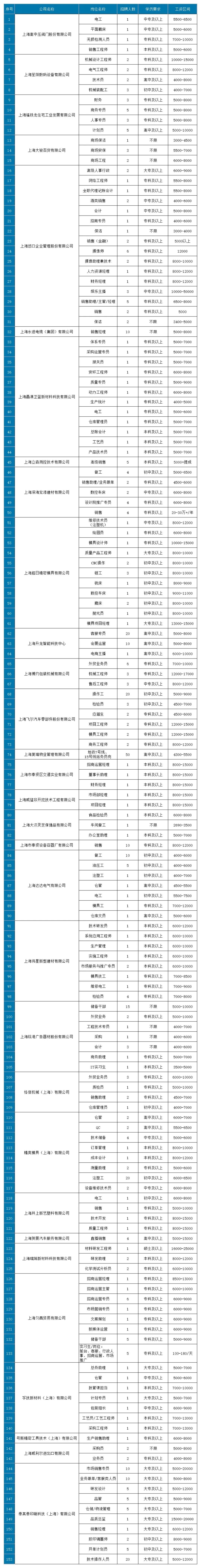 153个岗位,招聘475人
