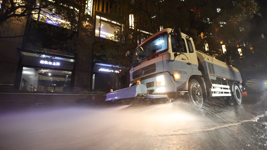 “我们的深度保洁集中在深夜11点到凌晨4点,这样安排避开车流高峰,冲洗车也便于进入人行道、快车道,作业起来更方便。但夜深人静、人的疲倦感都会让人的安全意识放松,给作业安全带来隐患。环卫的衣服中间其实有一道保护装置的,不过是静态的。