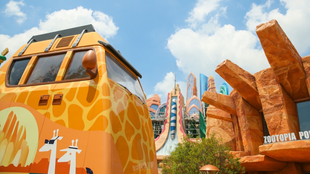 在这座活力都市里有各式各样的住宅、商业、公共设施,当然还有交通系统。游客从踏入“疯狂动物城”的那一刻起,便会看到许多充分“动物城化”、同时融入本地元素的城市和交通标识,倍感亲切。