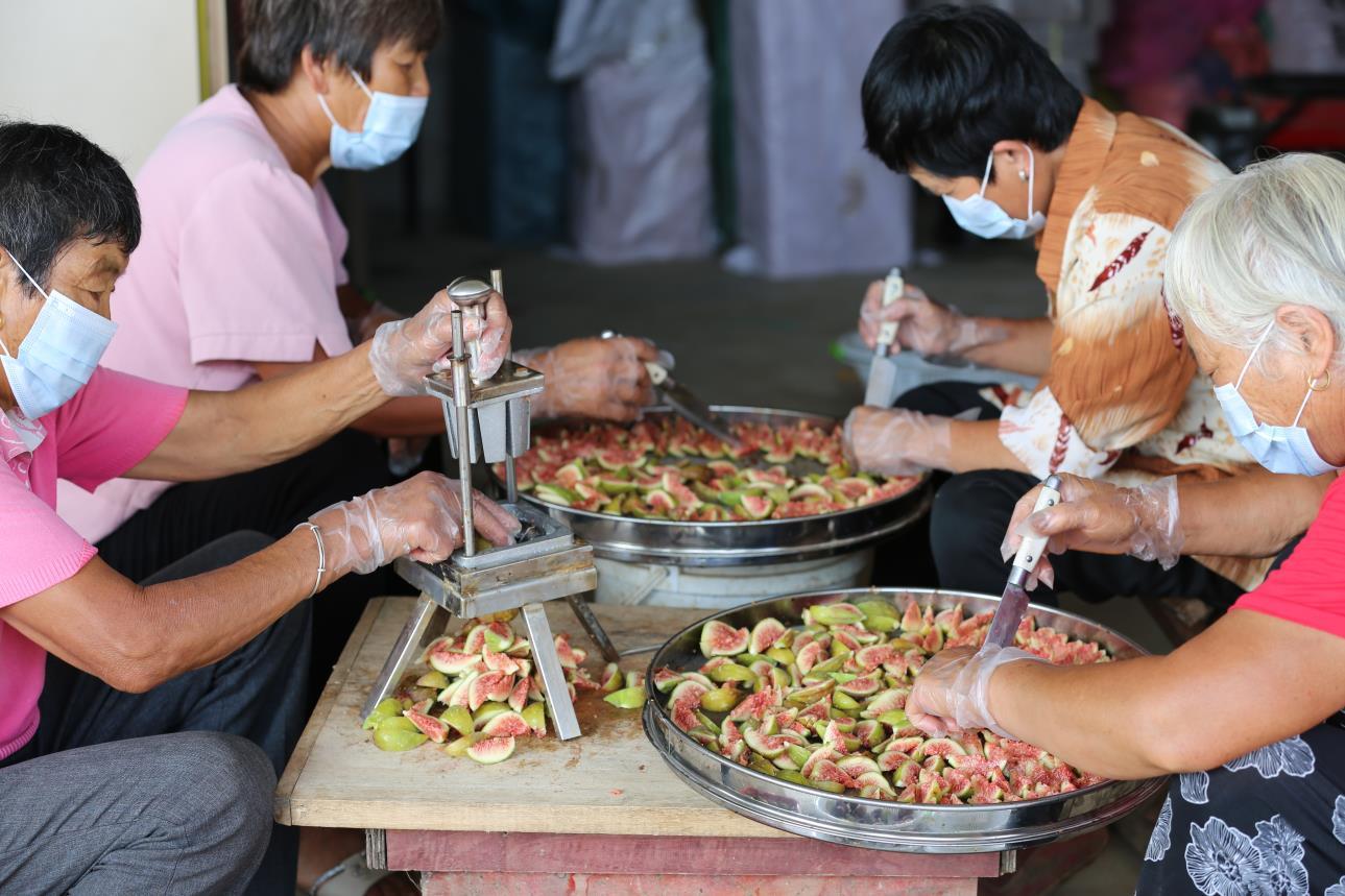 枣庄市台儿庄区涧头集镇鲁兴果蔬种植专业合作社王明龙种植的无花果喜获丰收,他组织社员将无花果加工成果干美食,远销到大中城市,效益提高了五倍,产品供不应求,成为带动社员增收致富的主导产业。(大众报业·大众日报客户端记者 张环泽 通讯员 张涛 报道)