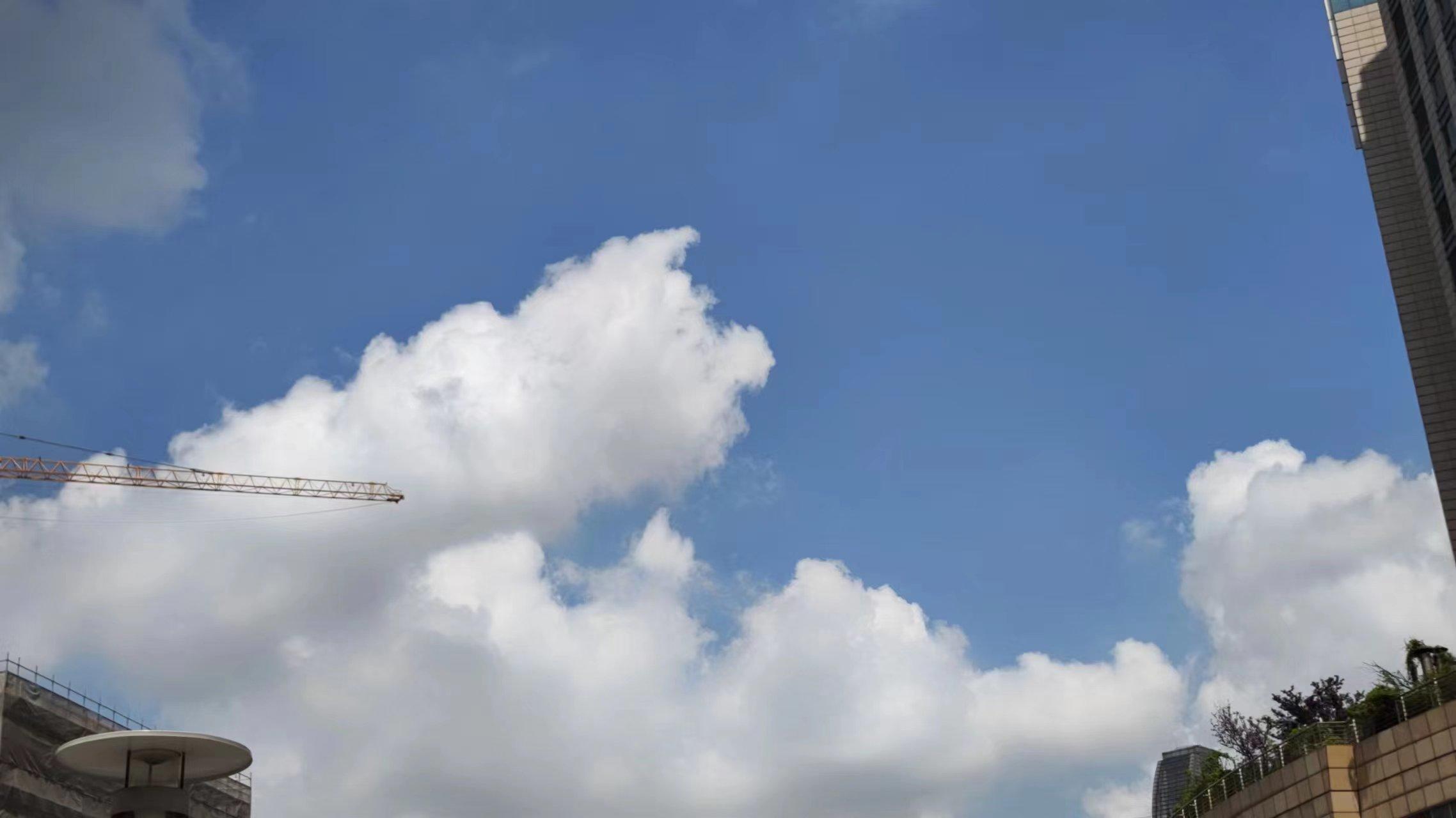 这两天,夏季体感再度回归,相对湿度较大,蓝天白云的水晶天继续,大朵大朵的白云变幻出各种灵动的造型,令人心旷神怡。