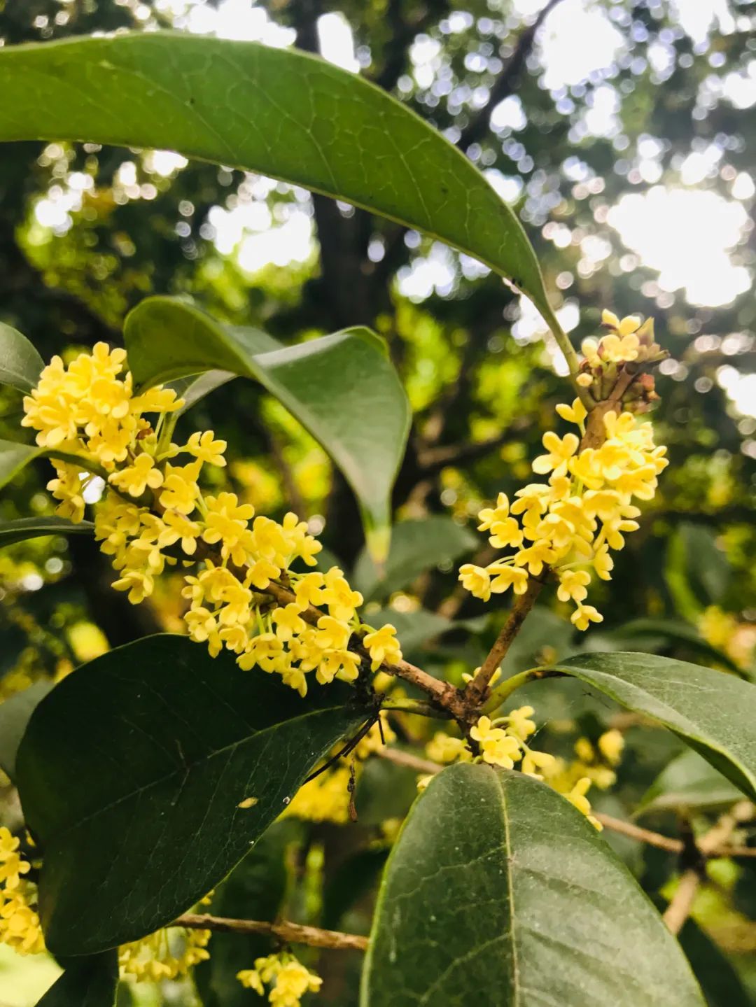 纷纷来到公园觅桂寻香