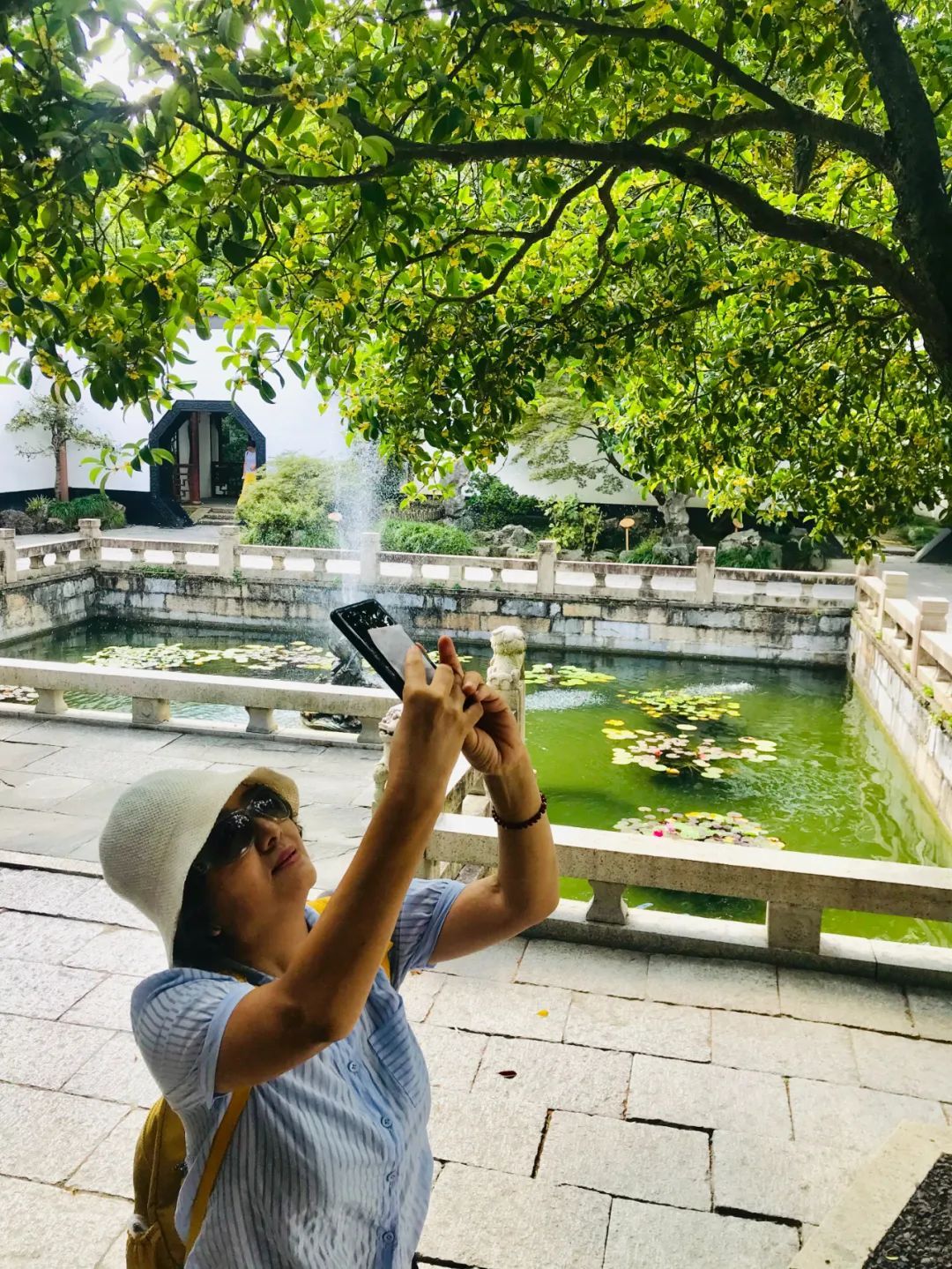 “公园种植了约200株桂花,目前银桂、金桂正陆续开放,后续还有丹桂和四季桂,桂花的花期基本在一个多月,市民游客可以在9月至10月前来赏花。”上海醉白池公园绿化工程师沈彬介绍道。