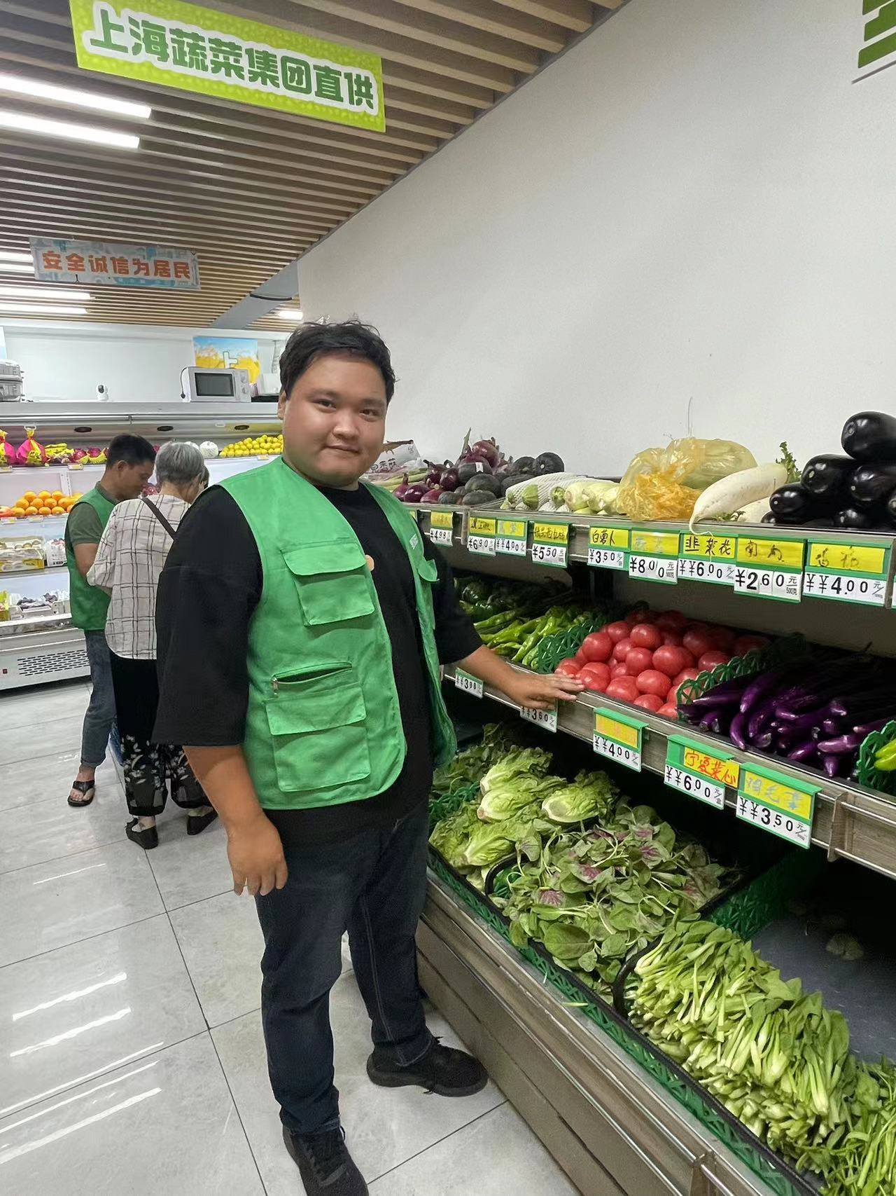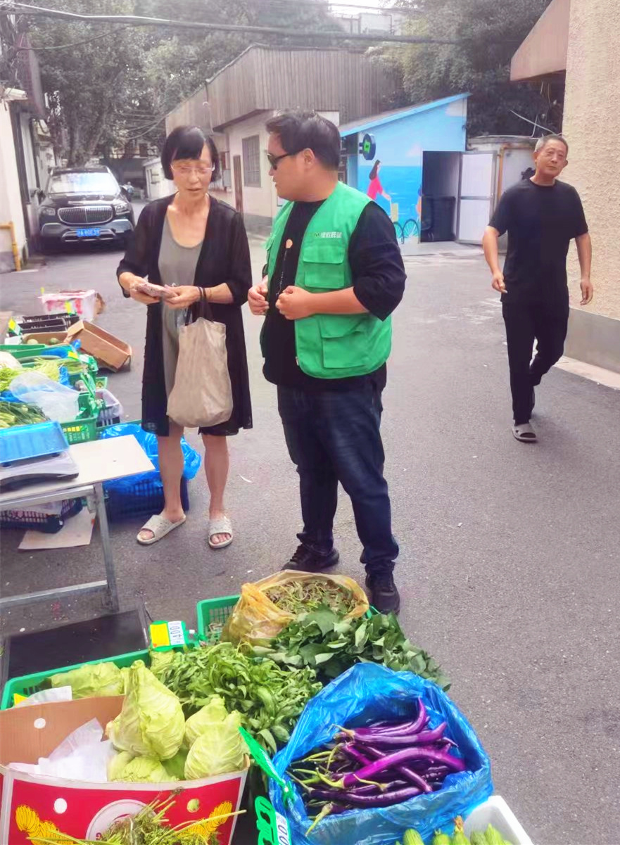 t每周一至周六上午,静安寺街道社区直供服务都会轮流走进各个居民区。和新鲜蔬菜一起来的,还有被居民们亲切称呼“小胖子”的刘梅骏。称重、收费、整理蔬菜,看着他一边忙着工作,一边和叔叔阿姨热情地打招呼,很难想象在两个月前,他还是社区里一名长期失业青年。