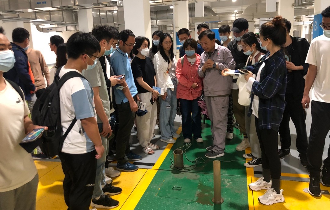 虹桥污水处理厂讲解员带领参观者深入污水处置现场进行实地讲解,让大家零距离感受到生活污水由浊变清的全过程,并对参观者提问一一进行回复。