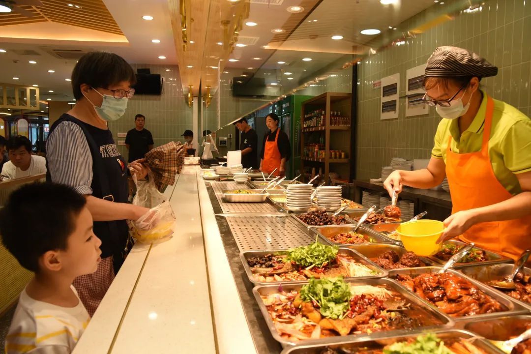 9月7日中午12点,小嘉走进商场看到,一家中餐店坐满了前来尝鲜的市民。“菜看着很清爽,分量很足。一餐平均价格在15-25元之间,比较实惠。”家住附近的刘阿婆说。