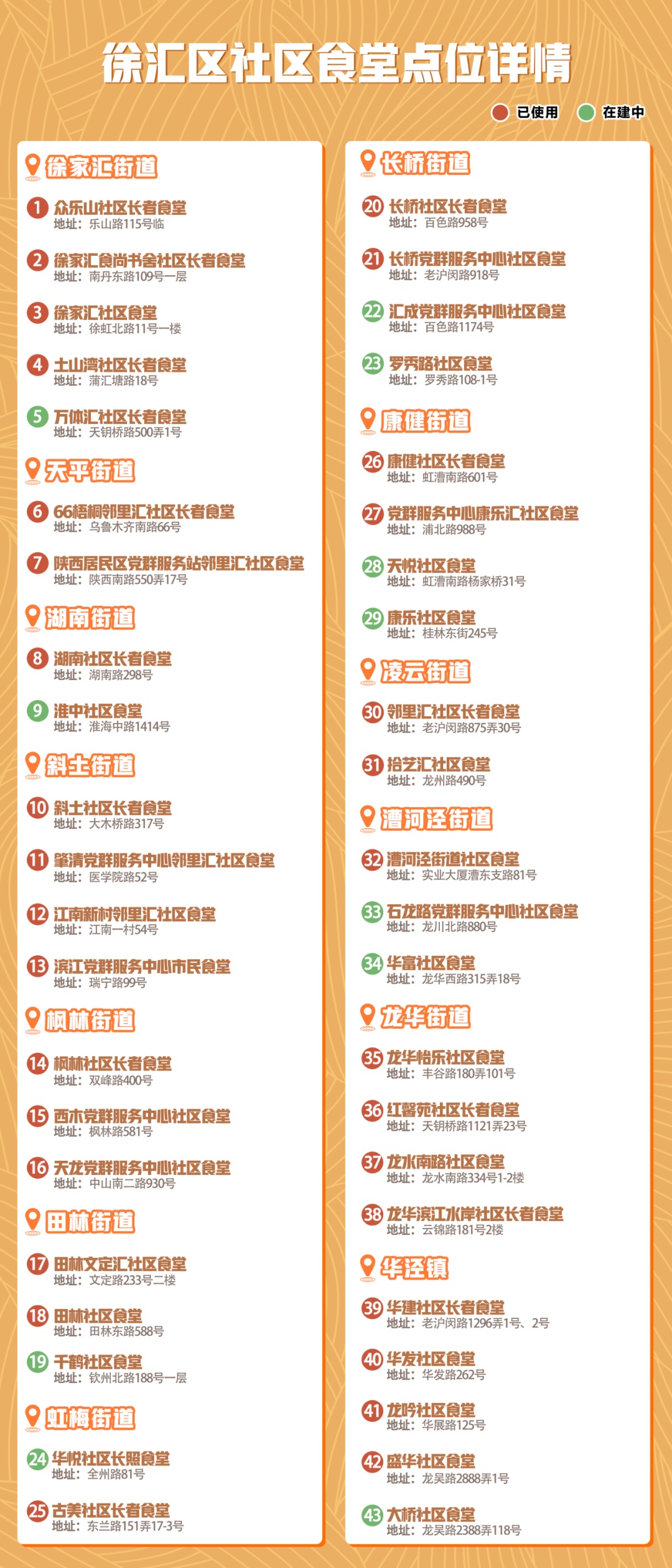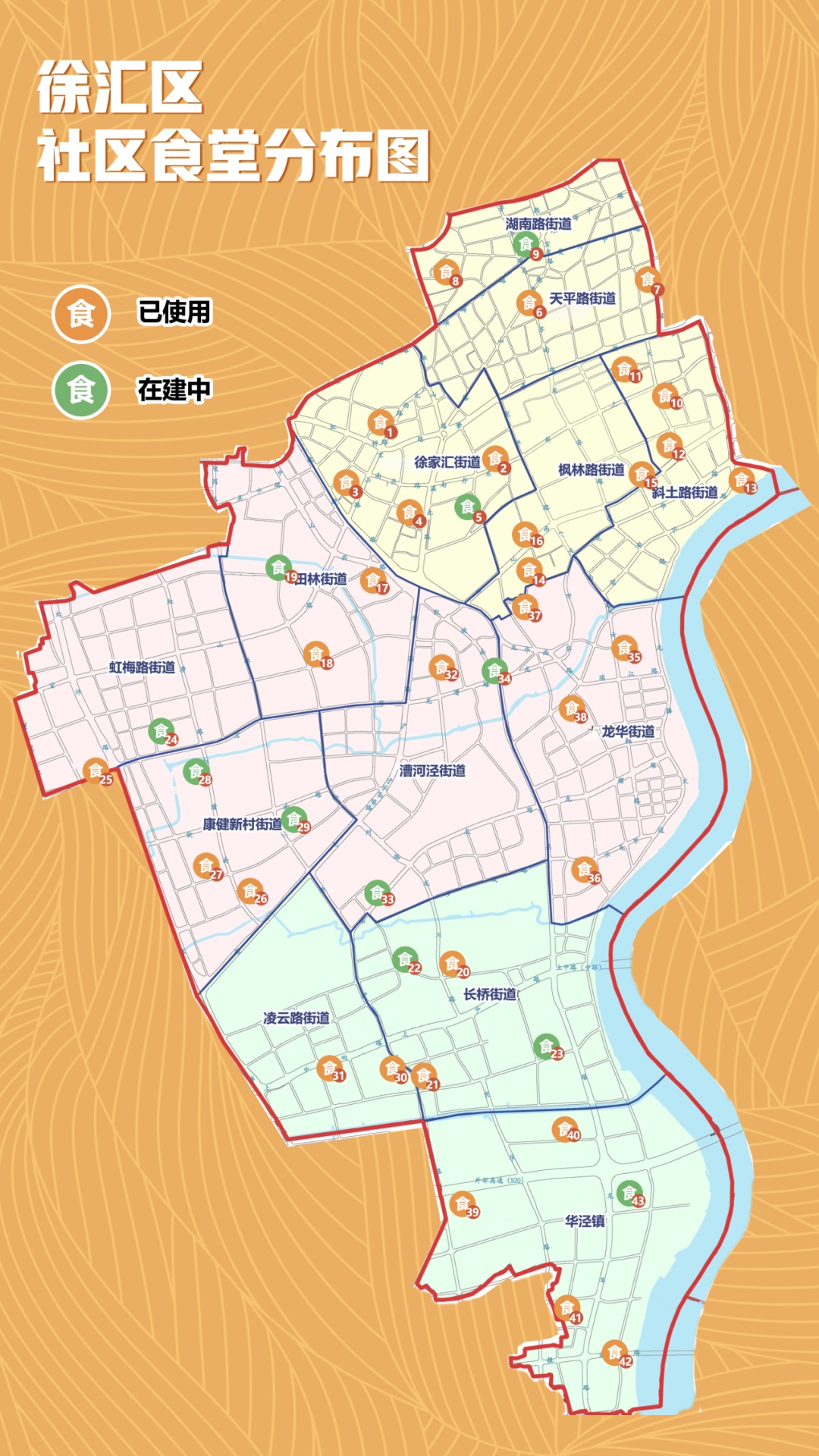 一起来探索美食 徐汇区社区食堂全地图 2022年,徐汇区在居民区最便利的沿街醒目位置建设“邻里汇·党群服务中心”,配齐社区食堂、社区卫生服务站、社区文体、社区助浴等基础性功能设施。全区社区食堂从2021年底的11家增长到32家,老年人就餐选择更方便多样。 为了提升市场主体参与为老助餐的积极性,徐汇区探索了以“政府出资+国企助力+专业运营”为主的运作模式,提升餐食品质。 菜品质量上,社区食堂也经历了从居民“吃得上”到“吃得香”到“吃得好”的转变。部分食堂还提供现场手工制作的包子、油条为居民提供“有小时候弄堂味道”的四大金刚早餐。 沿着社区食堂地图 约上老友一起去吃饭吧 长按二维码查看具体内容