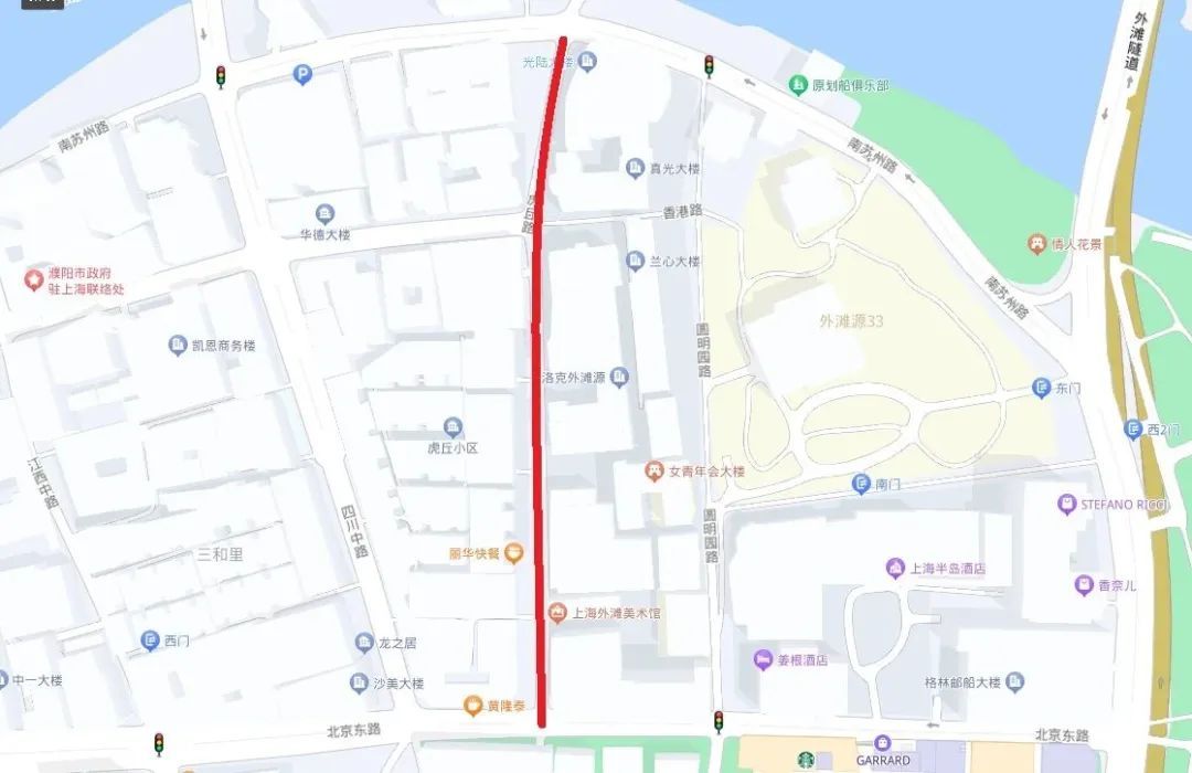 四、2023年9月16日至9月17日(每天7时至18时),北苏州路(江西北路至吴淞路)禁止机动车、非机动车通行。