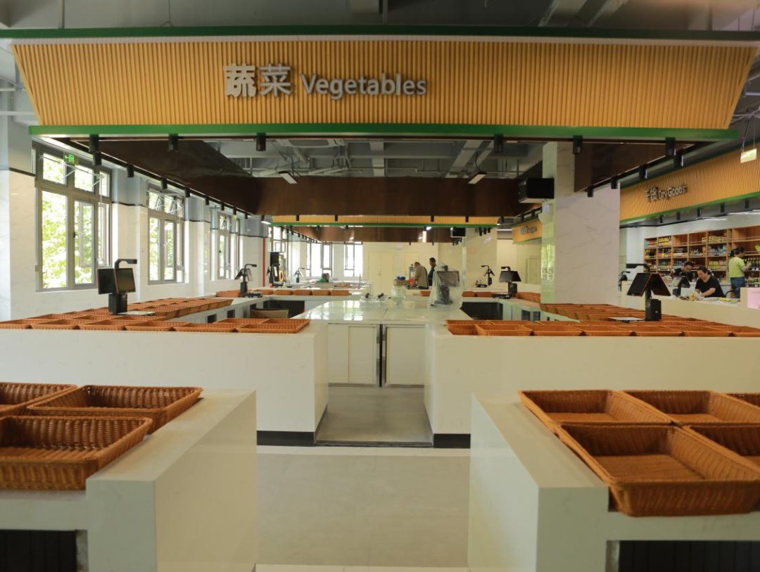 这里既有城市超市的舒适,又保留传统菜市场的格局,增添人情味和烟火气。每位摊主穿着统一的服装,将副食品摆放整齐,并标有统一的价目牌。