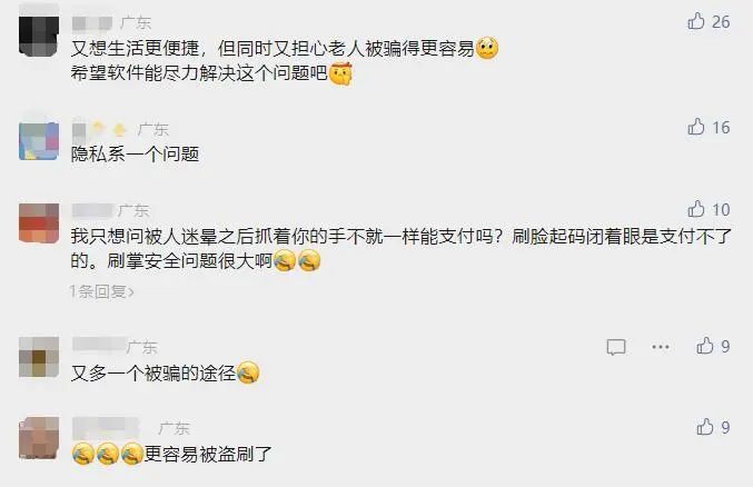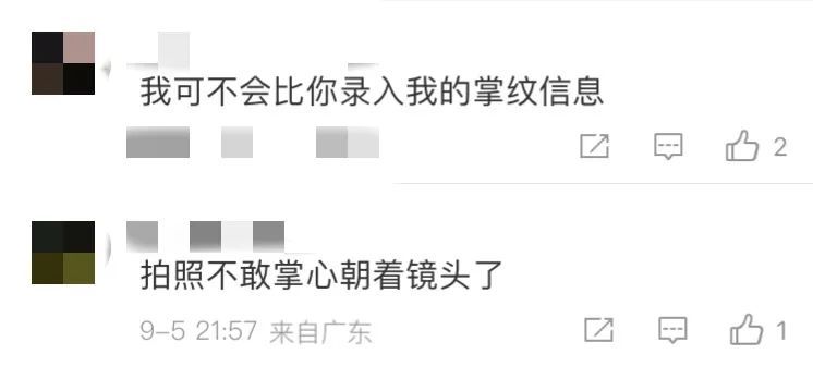 “以后是不是不能随便伸手了?”“以后拍照不敢掌心朝向镜头了”“刷脸支付好歹闭着眼还刷不了呢,万一昏迷状态下被人抓着手不就能付钱了?”网友们纷纷表达了自己的担忧。