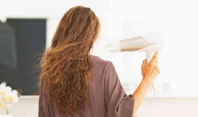 电吹风的温度以 57℃ 左右为最佳,可以在短时间内快速干发,又可同时保存头发的天然水分。如果电吹风配备了聚风头也可以使用,它能集中风力,为吹干头发加速。吹风时可配合梳子使用,让头发更加柔顺服帖。吹风时保持距离,吹风机与发根最好保持 10~15 厘米的距离,风口朝下。可以先吹头皮,再吹发丝。吹的时候要时不时抖动一下吹风机,避免直吹使头皮产生灼热感。由于发型、发量、头发长度不一样,吹发时长可以这样判断:以吹完头发后摸着还有一丝湿润的感觉为宜。头发吹至七八分干时,用冷风缓缓吹头发,让因热量打开的毛鳞片闭合,提高头发光泽度。还可以在头发渐渐吹干时使用护发油或免冲洗护发产品,保持头发柔顺。