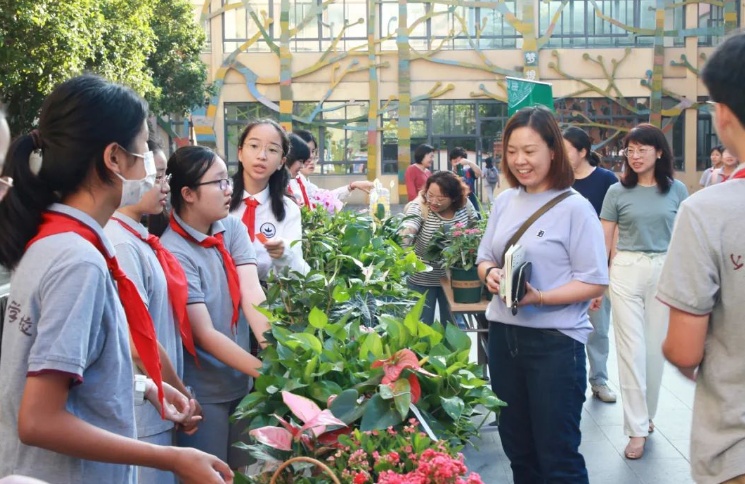 9月8日清晨,实验西校的老师们一进校门就收到了少先队员送上的一盆盆绿色盆栽。一句句问好、一声声祝福,让这个教师节充满温情。