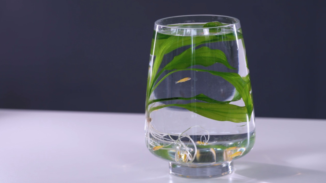 养在玻璃瓶里就很美观。因为它是沉水植物,养护时注意水量要没过叶片,全株都要在水里。