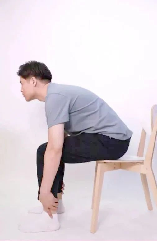 动作要领:身体正坐,向前弯腰,前胸尽量贴到大腿,双手向下抓住两踝关节,到最大限度停5~10秒钟,连续做10次。