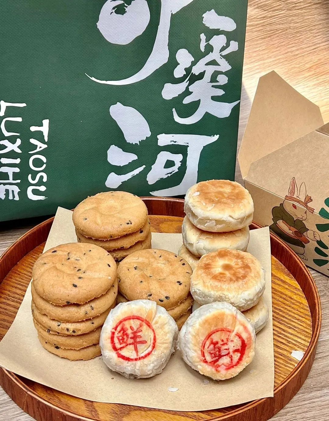 桃酥月饼是泸溪河近期推出的新品,比较受年轻人的欢迎。桃酥月饼共有两种口味。芋泥麻薯蛋黄味中间是整颗蛋黄,软糯麻薯作夹层,包裹着细腻的芋泥豆蓉馅;西柚山楂味加入了铁山楂和西柚制成的馅料,口感偏酸甜果味。