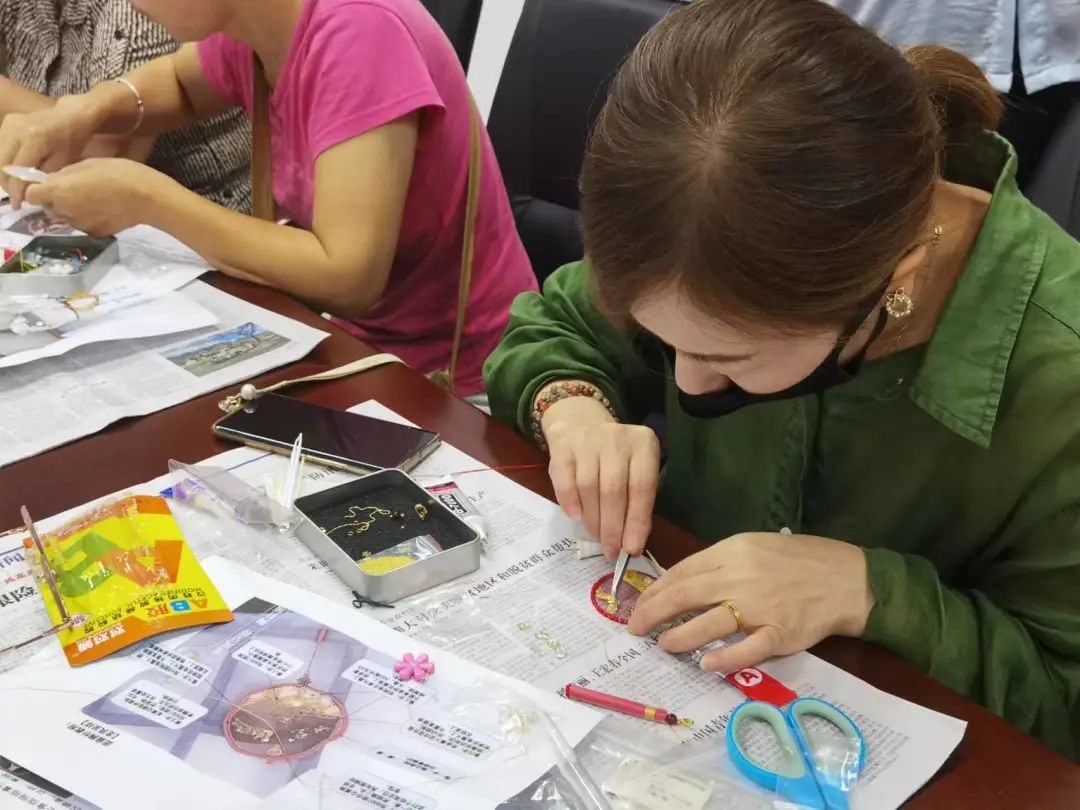 为丰富辖区内妇女的精神文化生活,增强妇女的动手能力,天鹅湾居委近期开展了名为“我以执扇 襟上添花”的古风团扇胸针DIY活动。