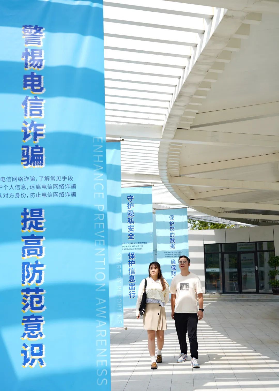 在全民防诈展示廊,一张张长卷海报上写满了各类防诈知识、法律法规等,强化网络安全的重要性。“我们园区的这个网络安全主题,通过展板、海报学习到了很多跟预防网络诈骗有关的知识。这也提醒了我自己要帮助家里的老人、小孩注意到我们生活中可能会出现的网络诈骗。比如收到一些不明信息的包裹要及时警惕,接到不明来电也要提高个人防范意识,感觉受益良多。”虹泾鑫汇园职工王女士告诉记者,休息时间会在主题公园里逛一逛,看看网络安全宣传的科普内容。