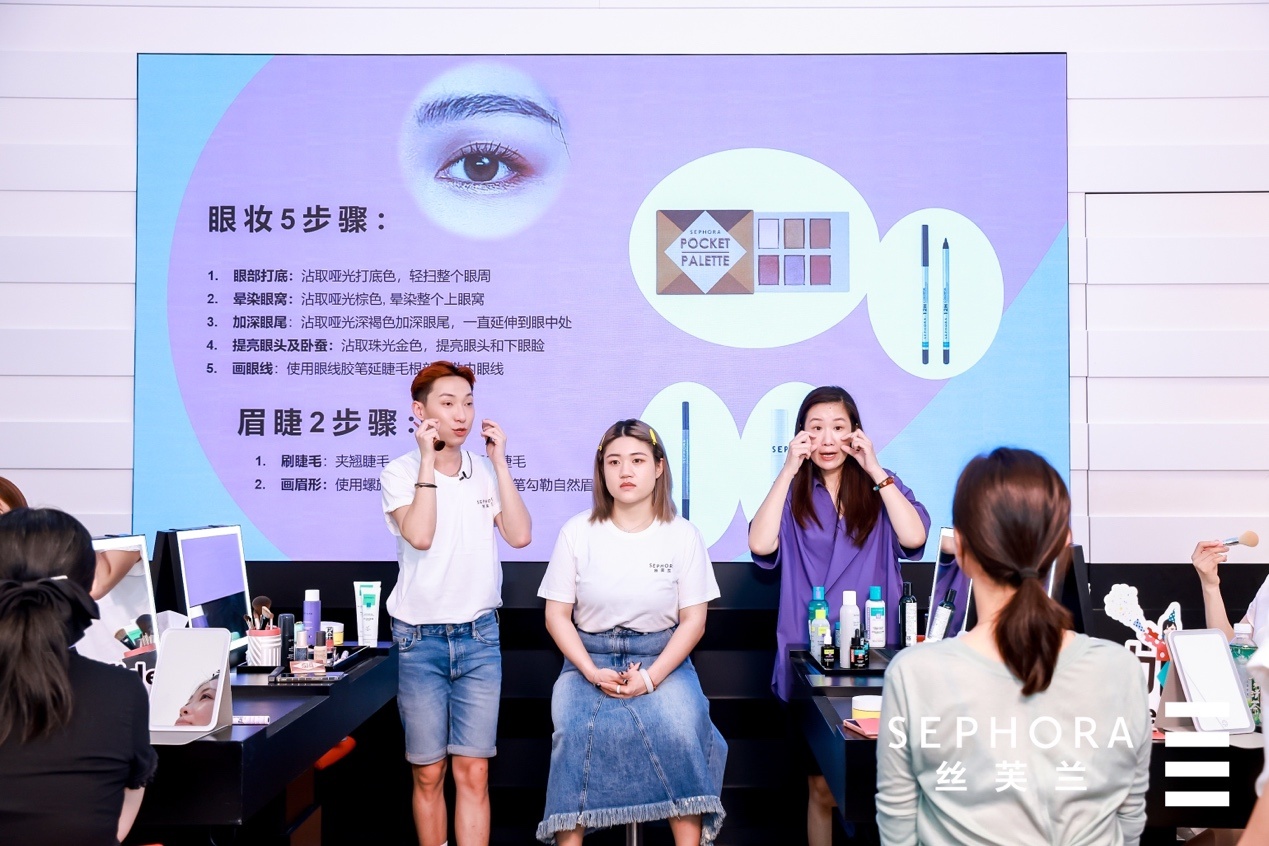 在位于南京东路步行街的丝芙兰未来概念店里,丝芙兰美力大师黄亚景和王琦在第四聋哑学校彭晨炜老师的配合下,向听障学员们系统地介绍了护肤美妆知识,手把手地教授她们正确的护肤手法和实用的化妆技巧,还为她们打造定制妆容。在第四聋哑学校老师的翻译下,活动现场气氛活跃,不时爆发出欢快笑声和阵阵掌声。“专业的老师,专业的课程,专业的建议,从今天开始,我也可以变美了。”学员吴斐在纸条上写下了对活动的感受。