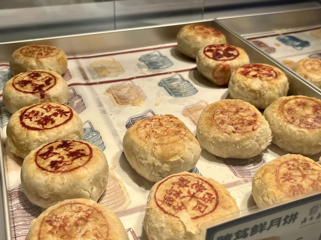 始于1851年的百年老字号西区老大房,一直以现烤鲜肉月饼而著称。据售卖点销售人员介绍,鲜肉月饼的酥皮的比例为6:4,每一只小小的鲜肉月饼都有足足64层酥皮,层层香酥、入口即化。名声响+味道好,自然就成了年轻人们互换特产的首选之一。