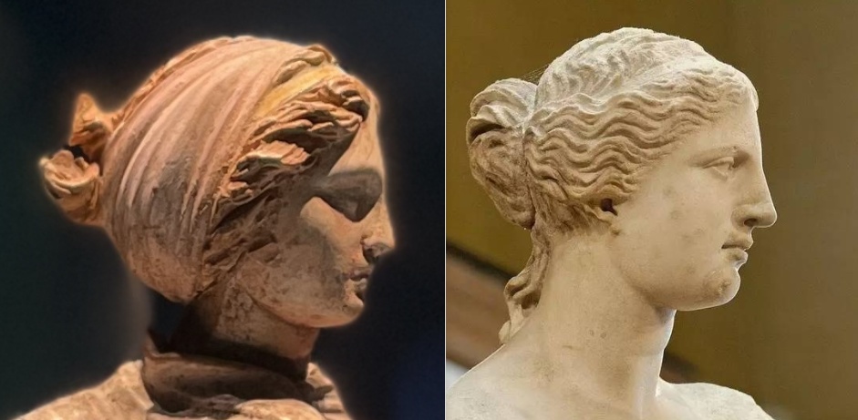 说她是“断腕的维纳斯”,并不是简单附会强蹭流量,虽然二者一个是陶俑,高度不到20厘米,一个是大理石雕刻,比真人还高,但二者在时代、艺术风格以及社会背景上都有异曲同工之处。