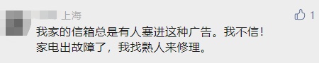 上海市物业管理事务中心提醒:别信!所有小卡片均非官方授权。市民一旦相信,很可能会遭遇维修“刺客”,成为一件糟心事。比如:洗一台空调要上千元,灯具修完反复故障,马桶堵了要疏通几秒钟收费近千元……
