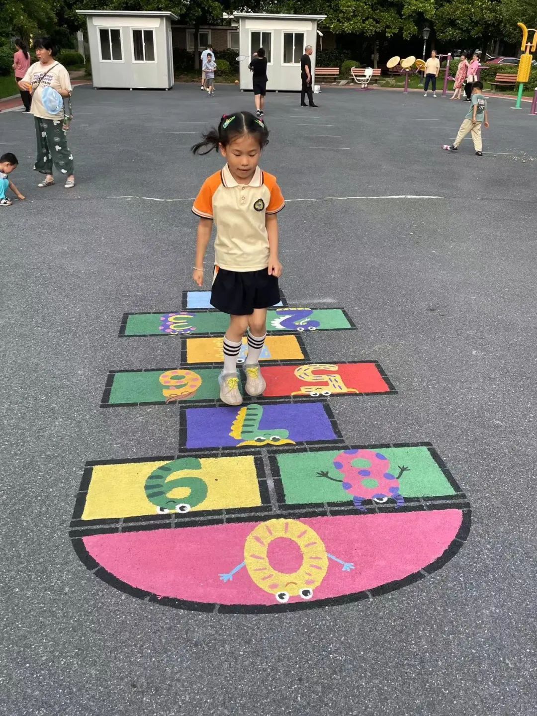 跳绳、踢毽子、跳房子、老鹰捉小鸡……近日,一幅幅童趣盎然的弄堂游戏彩绘,出现在闵行区虹桥镇一个小区的广场上。不仅吸引了孩子们在此嬉戏玩耍, 也吸引了一批爷爷奶奶前来“打卡”。