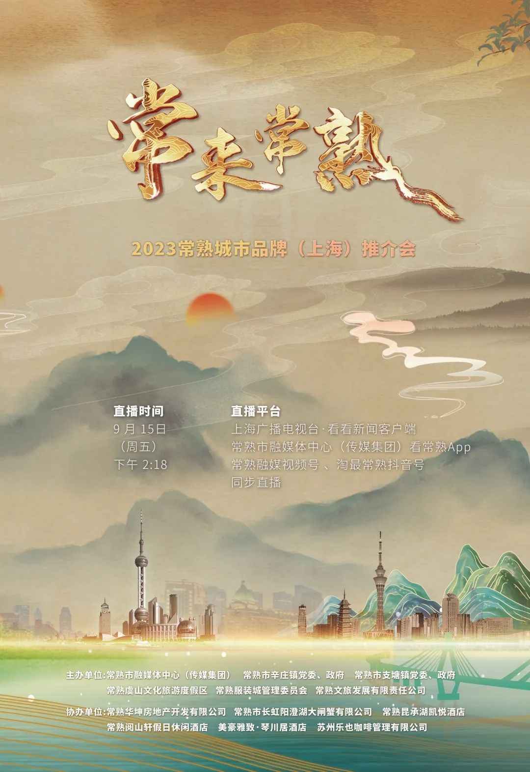 继去年秋季、今年春季 两次在上海成功举办 城市品牌推介会后, 今天(9月15日)下午2:18, “常来常熟” 2023常熟城市品牌(上海)推介会 将在黄浦江畔再次启幕, 以城市之名打造品牌盛宴, 把握沪苏协同新机遇, 助力常熟深度融入上海“半小时经济圈”。