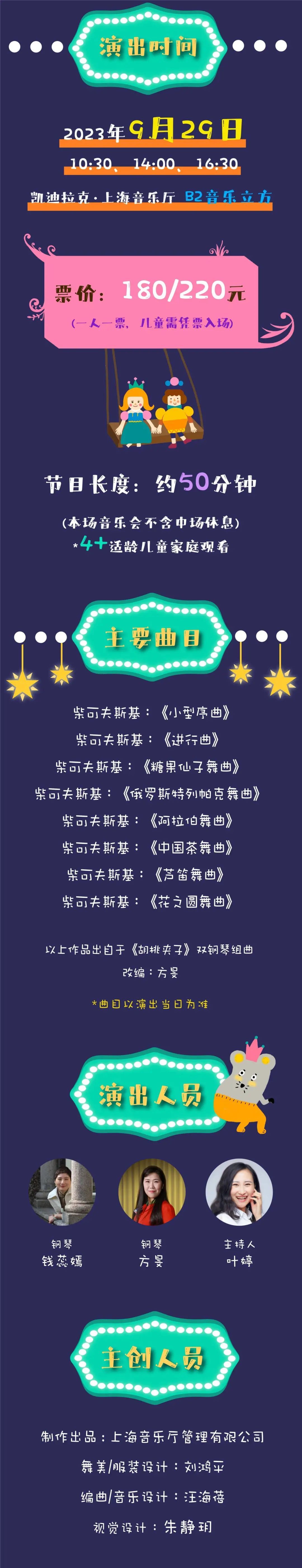 而不同于原版的交响编制,本次音乐会将通过两台三角钢琴,两位钢琴艺术家现场的“二十指指尖芭蕾”来呈现。家庭音乐会的好朋友叶子老师也将用她充满故事性的嗓音带领大小朋友们一起做一场有关所有人童年的梦。
