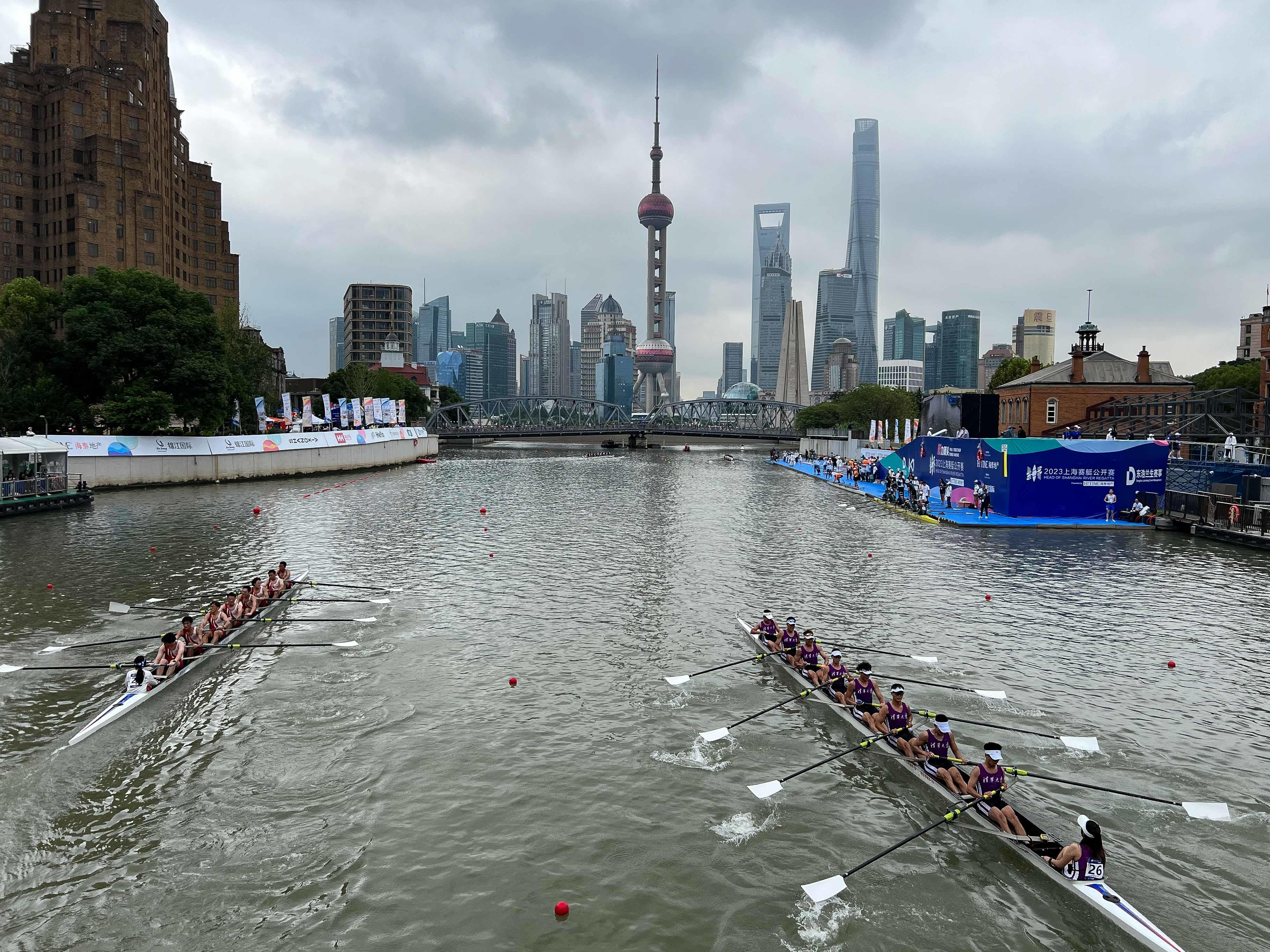 此次上艇赛道,西起静安国际中心水域,东至外滩外白渡桥。其间,选手们需要穿过各式各样的13座桥,绕过大大小小6个弯。沿着比赛路线,一幅绝美苏州河画卷徐徐展开,抵达终点的百年历史建筑——划船俱乐部旁上下水码头,选手们抬头就能看见上海“老三件套”(上海大厦、外白渡桥、黄浦公园)与浦东“新三件套”的同框。
