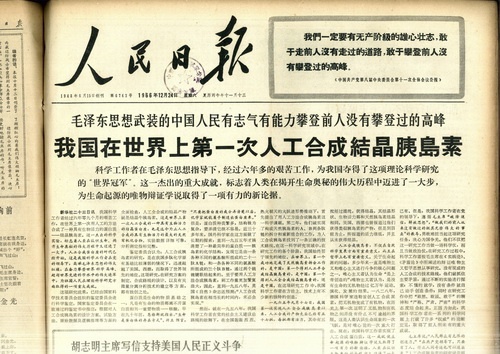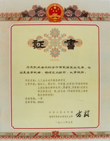 人工全合成结晶牛胰岛素第一次证实可化学合成生物大分子。在蛋白质之后,核酸的化学合成也于1981年在上海实现。我国开始在世界基础科学前沿领域发挥引领作用。