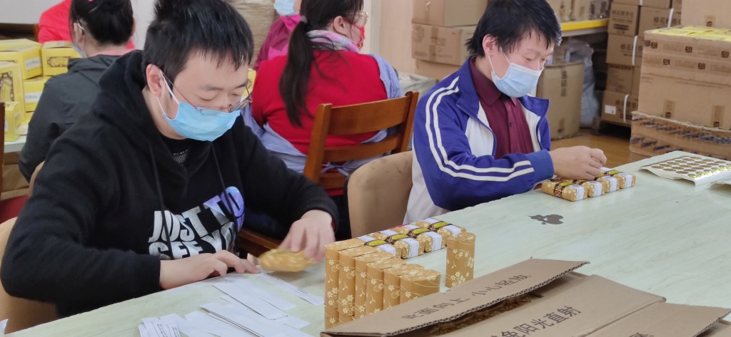 那么,在工业如此发达的现在,为何还要坚持手工包装呢?“其实不是不能用自动化设备取代,手工包装不仅是为了延续经典,而是希望坚持‘有爱的包装’。”在马德雄看来,这群特殊的人群可谓撑起了这款老字号经典产品的半边天。