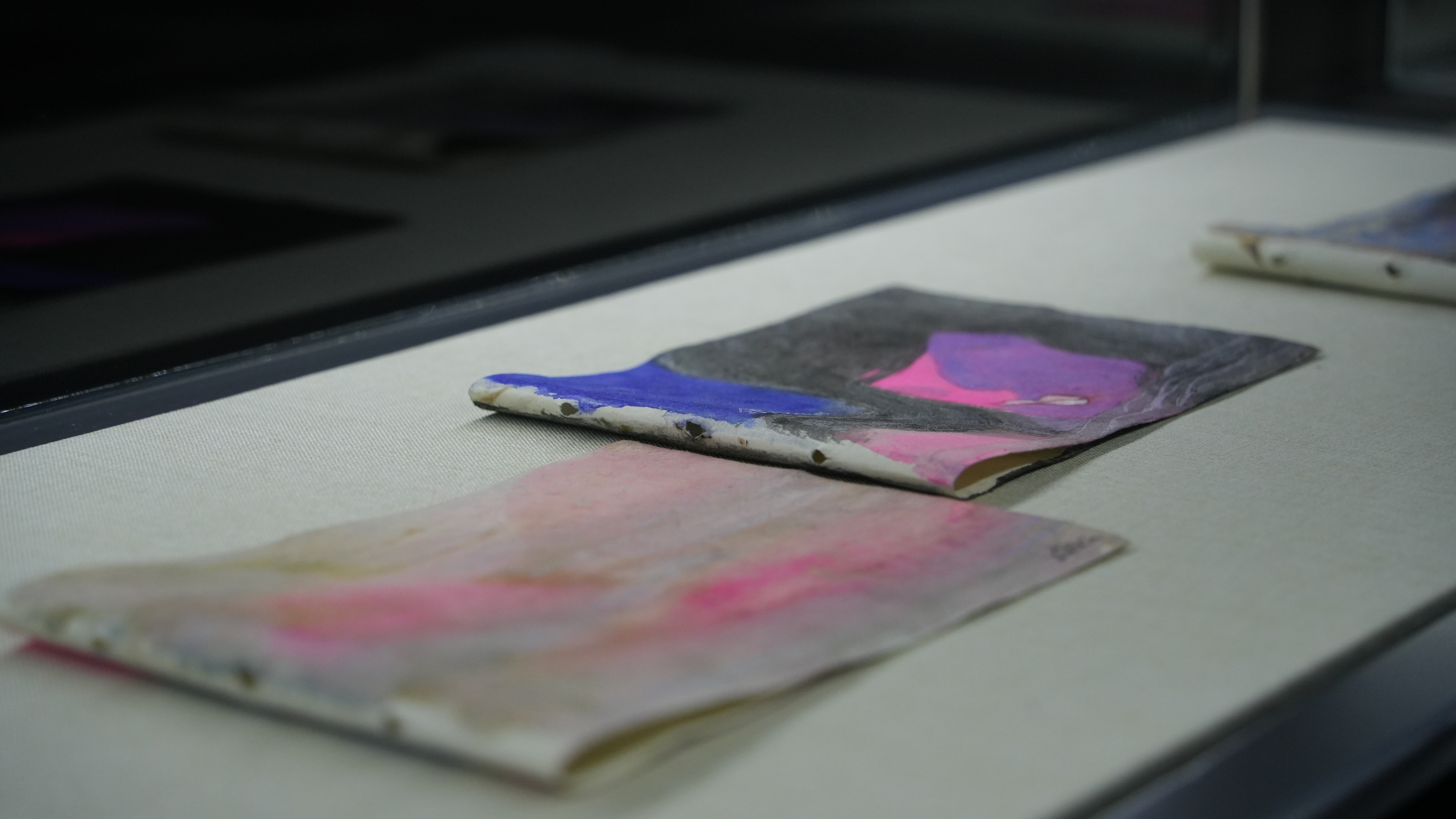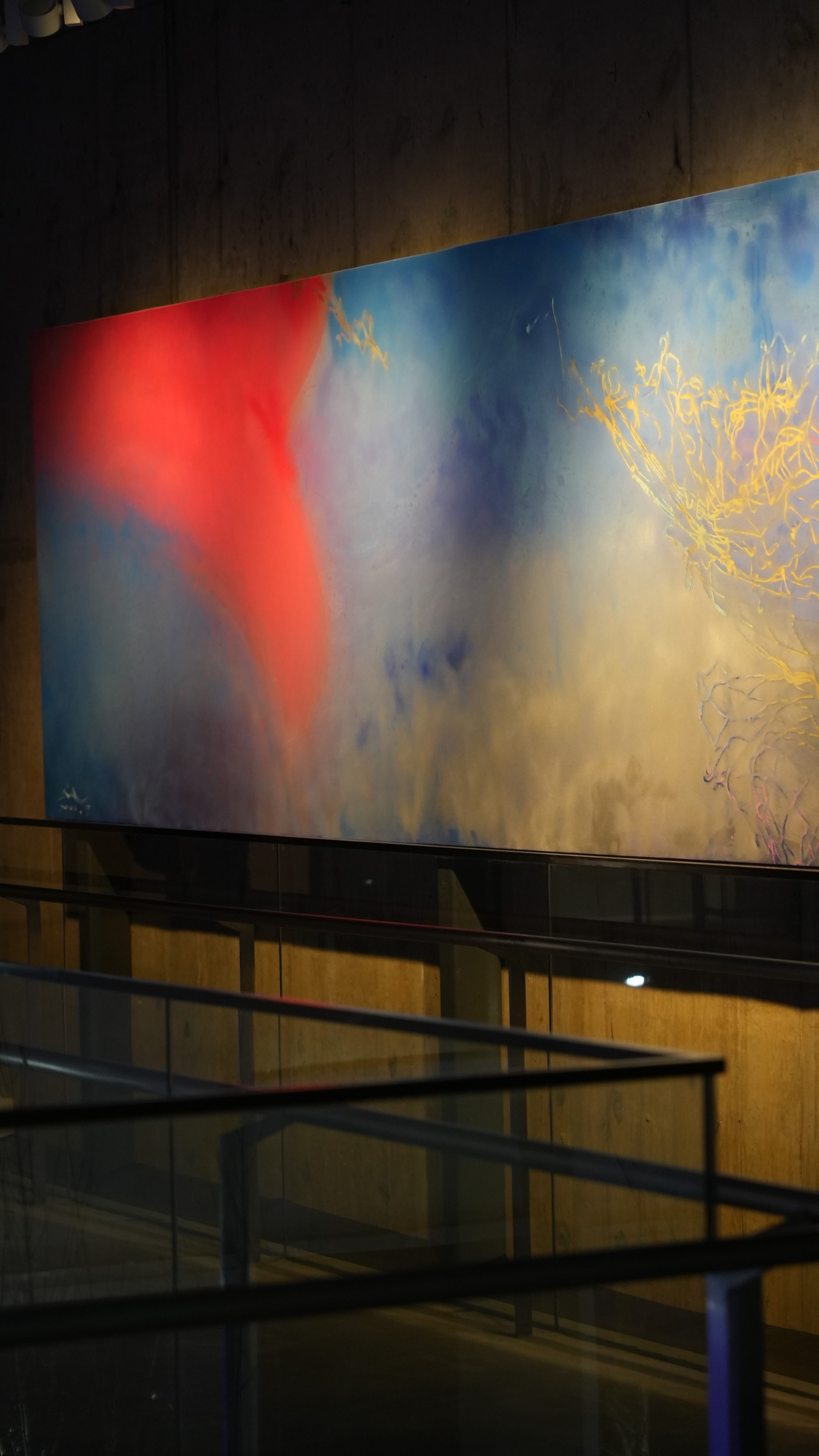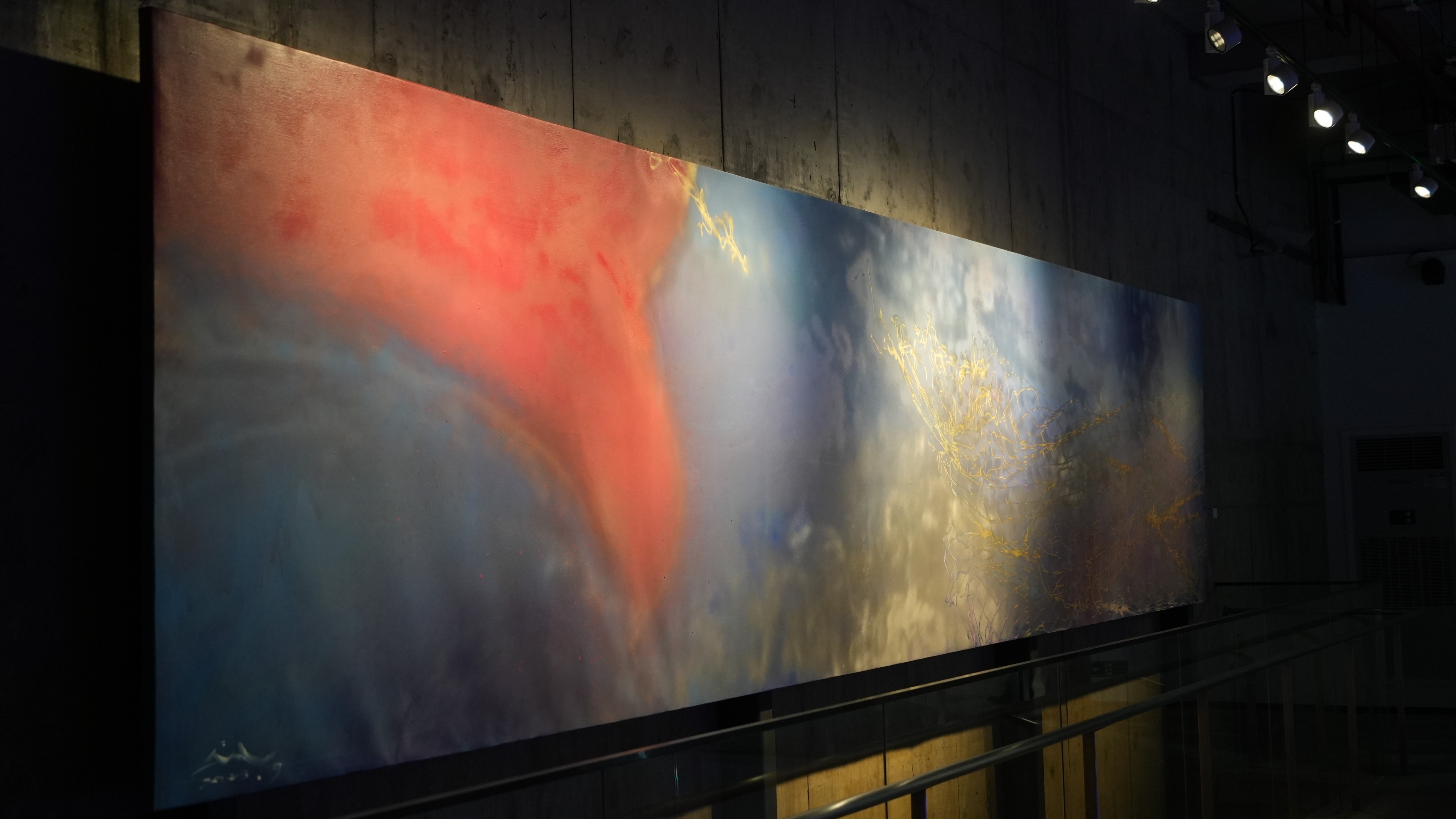 在展出的作品中,尺幅最大的作品《漏网之鱼》长8米、宽1.7米。在画面中,一条鱼突破渔网逃走,仅留下游动的红色鱼尾。作者林明杰想要借此表达的观念是:艺术是“漏网之鱼”。