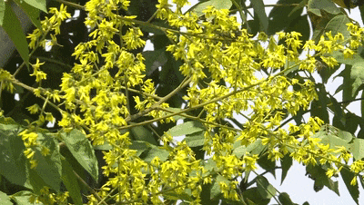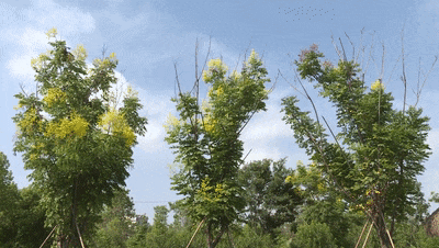 地上的草儿轻歌曼舞,树上的花儿也灵动摇曳,当季的栾树已经开出黄色花朵,有些枝头甚至已经结出了紫红色的果实。