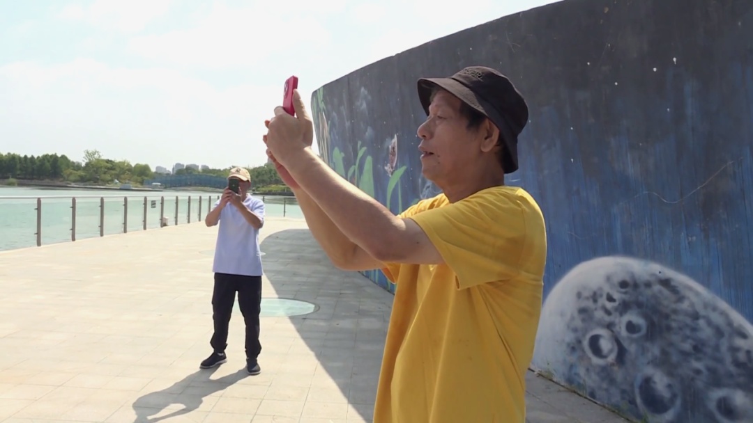不少市民游客走走停停,用手机定格夏秋交替的独特美景。大家表示,虽然白天还是有点晒,但这个季节总体感觉还是比较舒适,加上阳光明媚,拍出来的效果令人满意。