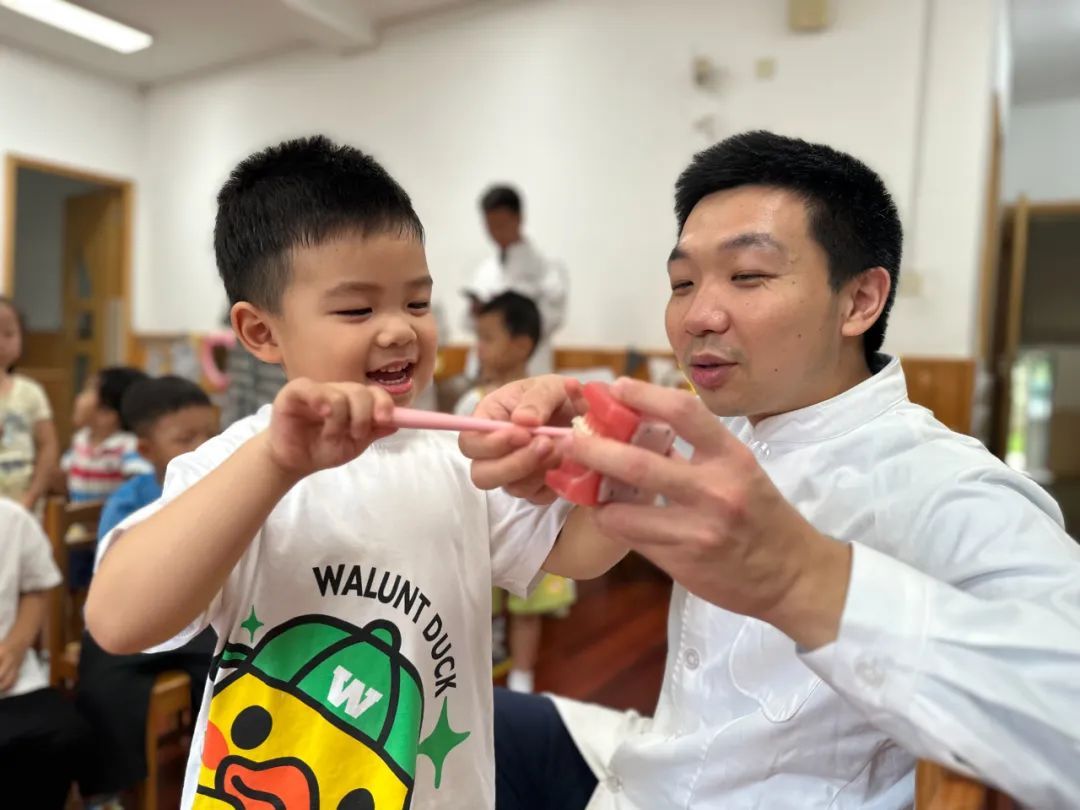 华亭二幼园长金素一介绍,幼儿园重视幼儿的健康保健工作,也开设了相关的健康课程。此次邀请牙科医生进园上课,意在通过开发社区课程资源,丰富孩子们的课堂,引导孩子们认识保护牙齿的重要性。除了面向孩子,爱牙护牙科普课也面向幼儿家长,当晚,还将推出爱牙日线上讲堂,家园携手呵护幼儿。