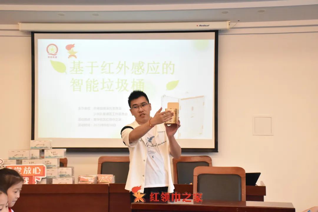 青华社区在社区中心•党群服务站开展“幸福社区里的青少年创新实验室”系列课程——基于红外感应的智能垃圾桶制作,让青少年的创新创造与社区垃圾分类工作有机融合。活动中,孩子们通过老师的专业讲解,了解到“红外线感应式自动垃圾桶”是通过红外线反射原理运行实现自动开合。
