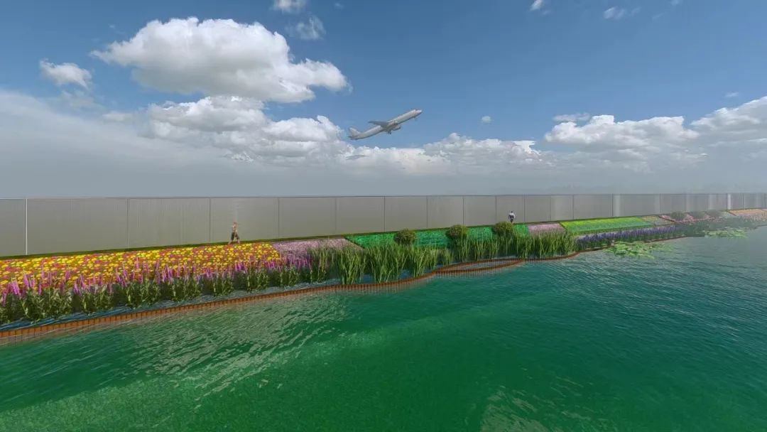此外,将以“南虹港观机长廊”网红打卡点为蓝本,对1.5公里南虹港河道护岸生态化改造、并结合周边已建成的启航公园,实现水绿相融景观水系,打造虹桥机场南大门景观。