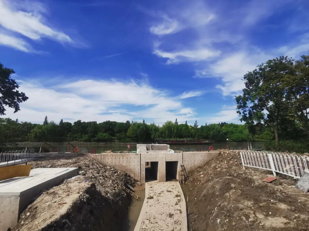 “原云霞绿地内景观湖泊因水体未与相邻河道水系相沟通,影响区域的水质提升。”新虹水务站负责人表示,计划通过实地开河50米,连通张正浦,并在连通处建成泵闸,将外河水引入湖泊内,调活区域水体,提升水质及景观风貌,成为生态廊道延伸水景。