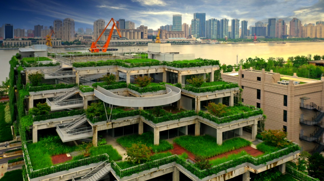 烟草公司机修仓库焕新为“空中花园”,远望形似绿色的山丘。