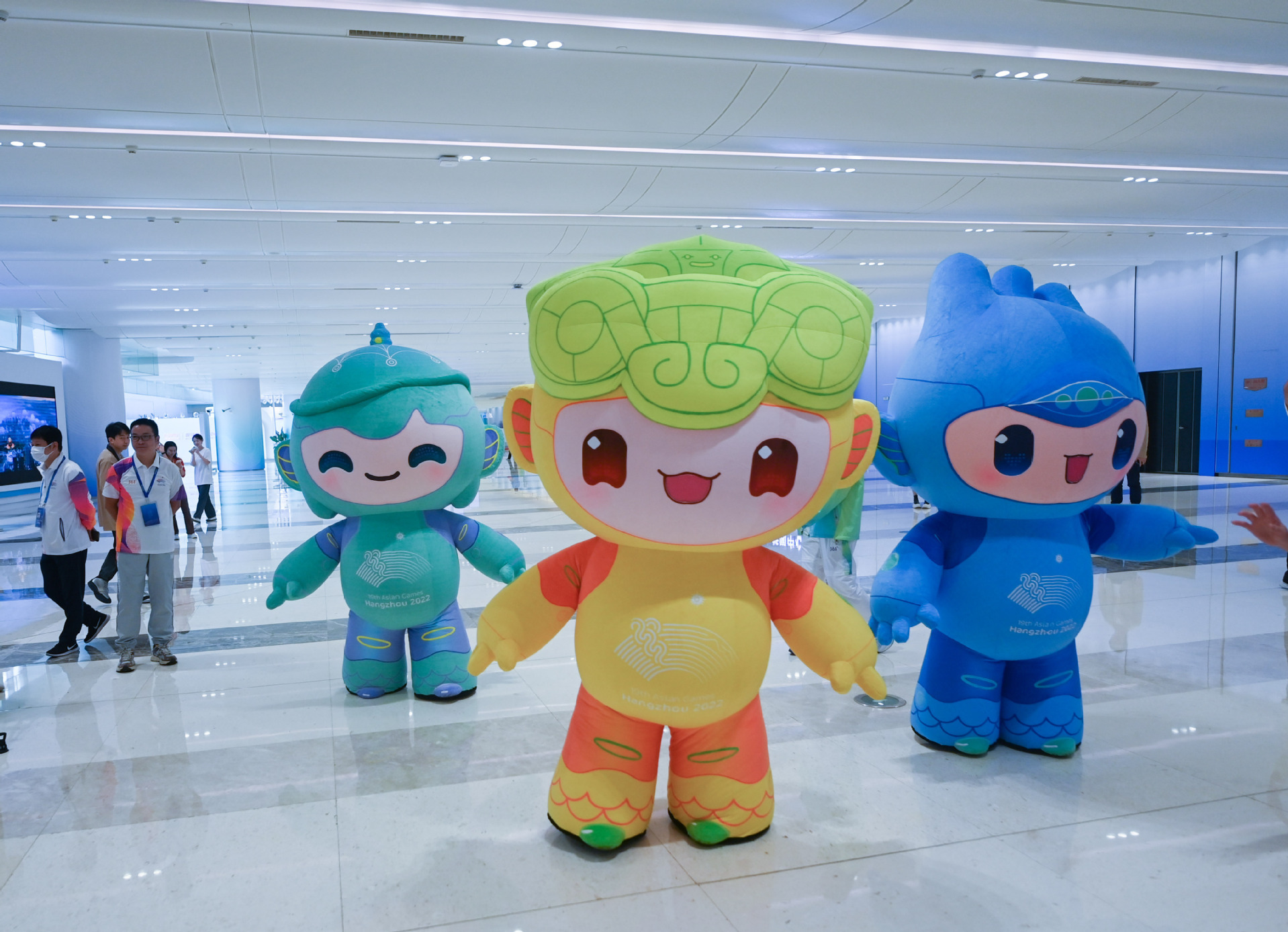 随处可见的亚运“三小只”——吉祥物“江南忆”:琮琮、莲莲、宸宸。从他们的身上,我们看到了中国韵中的厚重隽永:良渚文化证实了中华五千年的文明史;我们看到了中国美中的万物和谐:三潭印月映衬了自然与人文的相得益彰;我们看到了中国魂中的交融开放:钱江潮与大运河澎湃着勇立潮头的精神和信念……