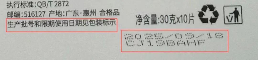 有可能是标注了限期使用日期,如果都没有找到,那么很有可能是标签不符合规定的产品。 产品使用期限应当按照下列方式之一在销售包装可视面标注,并以相应的引导语引出: (一)生产日期和保质期; (二)生产批号和限期使用日期。