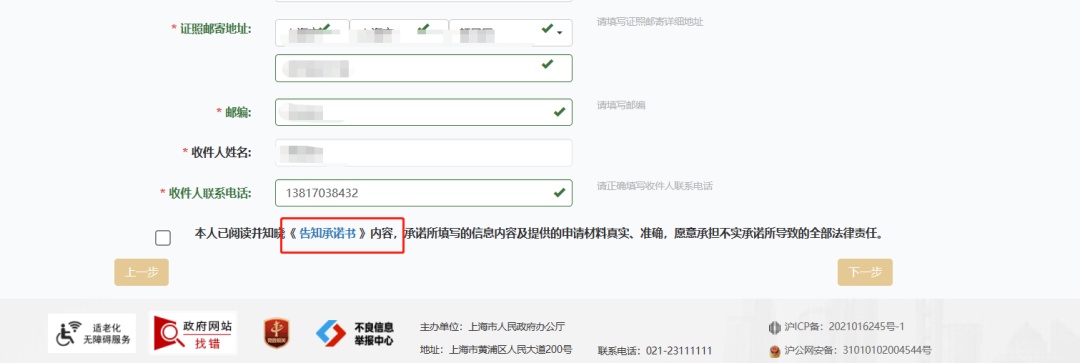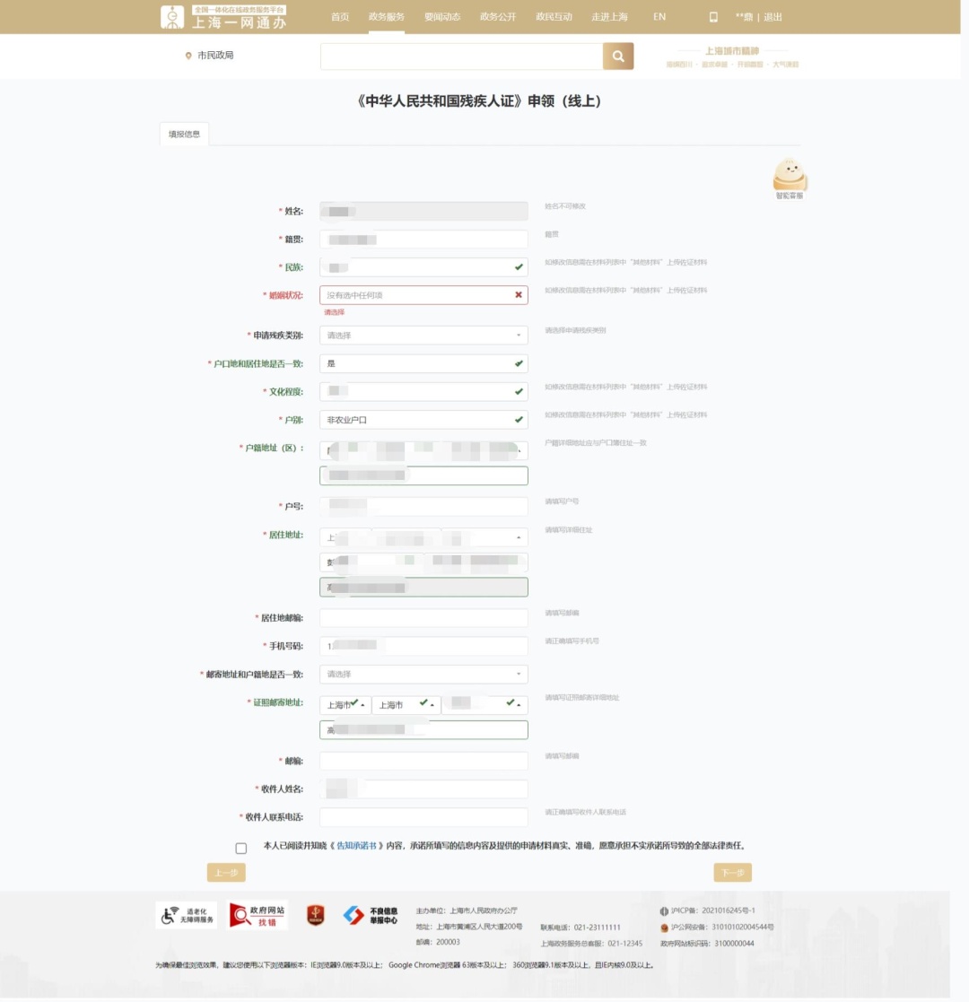 小编提醒:户籍地址省、市、县(区)区划为调用信息,不可修改,如与实际情况不符,不能通过PC端渠道申请。请申请人至任一街镇社区事务受理服务中心窗口线下办理。