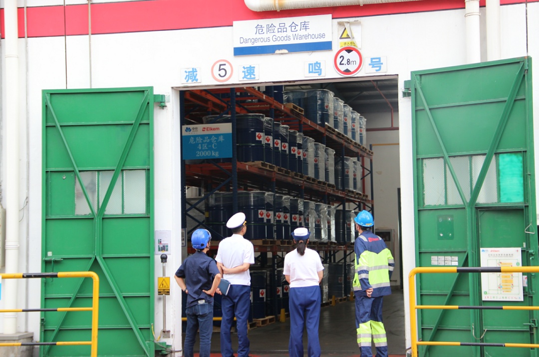 各部门组成的联合执法人员着重对危化品是否按规定存放、作业区相关工具有没有正确摆放、停卸区有无明显的警示标识、火灾烟雾报警装置等有没有完好无损、特种设备相关证照是否齐全等问题着重开展检查。